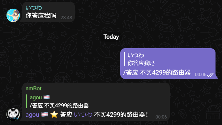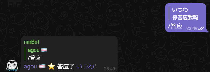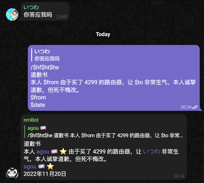 你回复 nmBot 发送的消息时,nmBot 会自动识别到你要回复给群友,所以你不必回复给群友发送的消息,回复 xx xx 了 xx! 就可以啦。