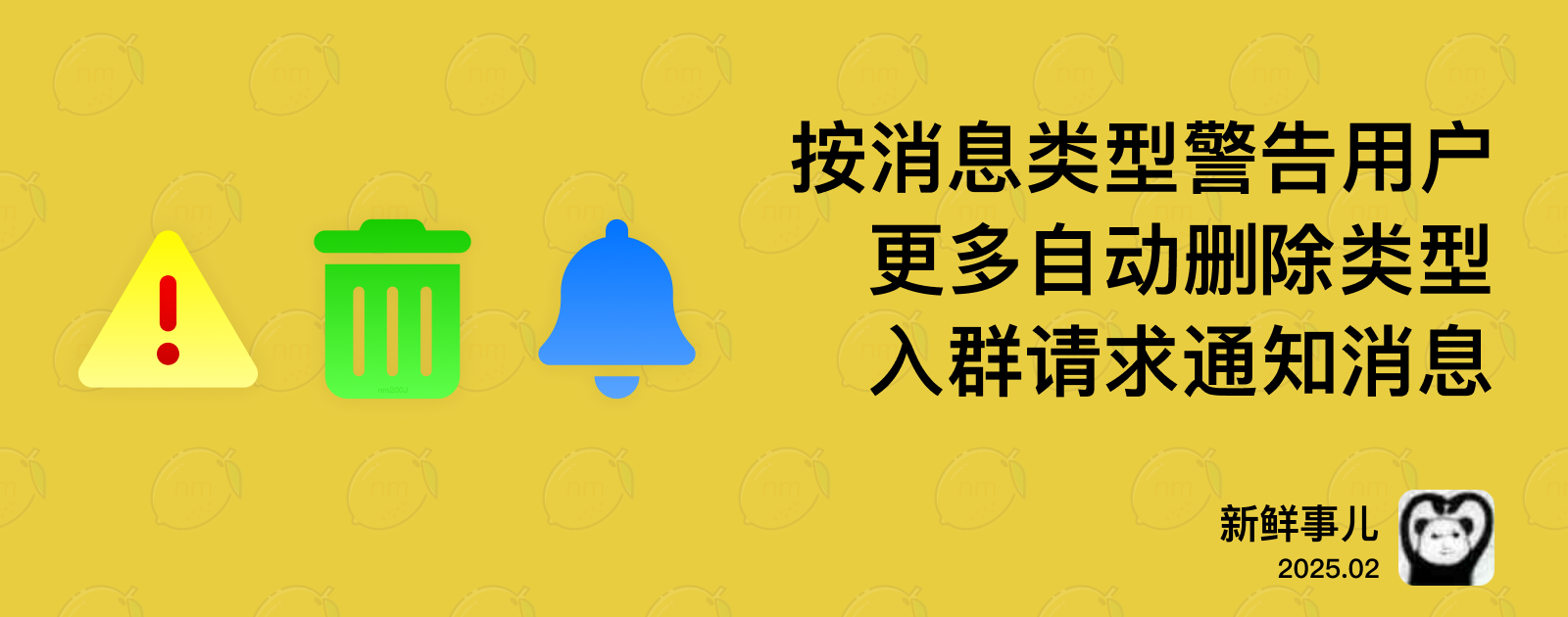 - nmBot 支持在删除群组中特定类型消息的同时,对发送消息的用户予以警告。